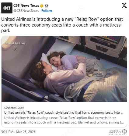 美联航要推出沙发式经济舱了,3人座可以躺平(图)